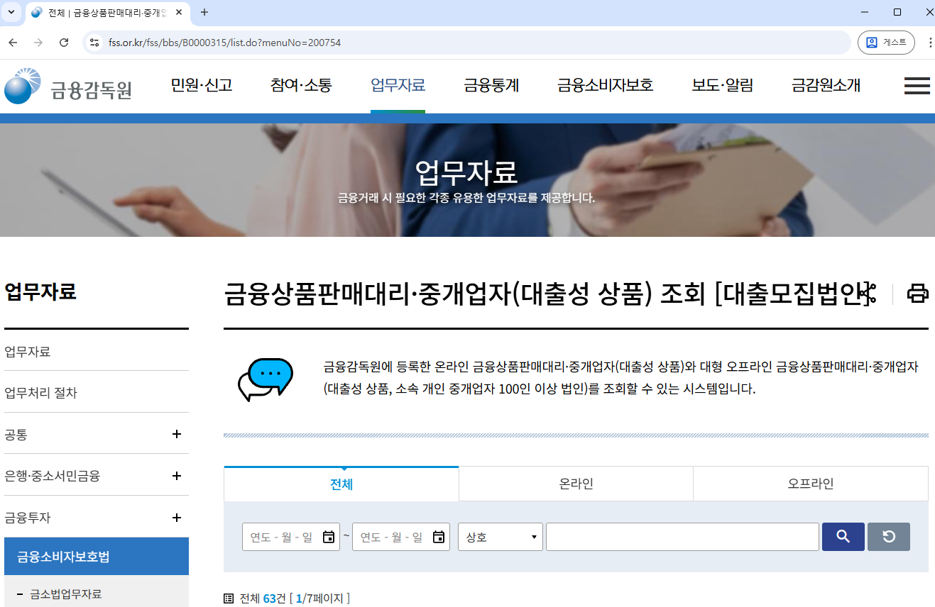 - 해당 금융회사 홈페이지 확인: 금융회사 홈페이지에 '대출모집인' 메뉴에서 등록된 모집인 명단 확인.